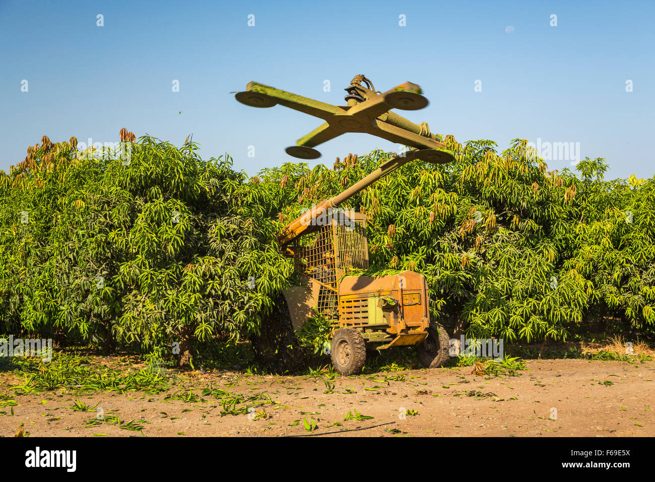 When grown commercially, mango trees require regular pruning to open up the canopy.